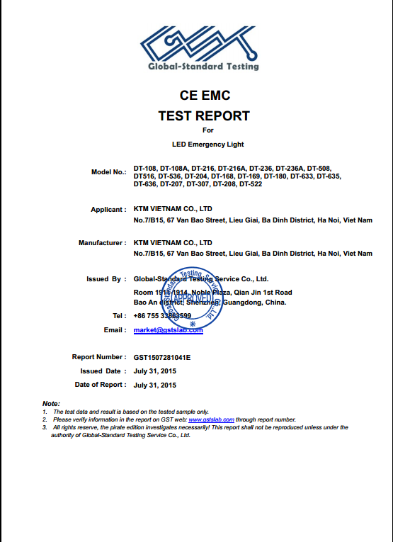 30/07/2015Chứng nhận chất lượng ĐÈN SỰ CỐ